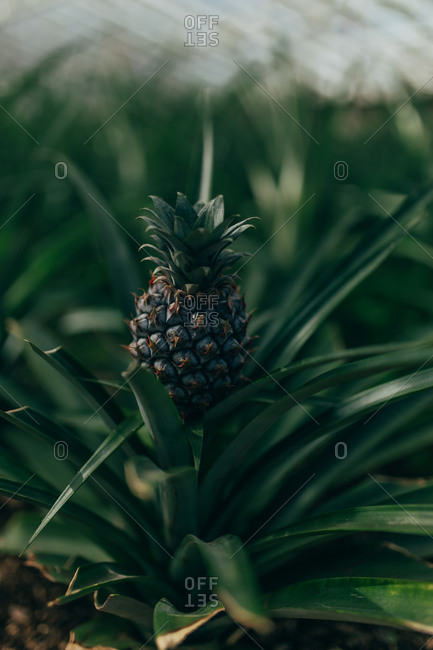 indoor pineapple plant ripe with orange juice