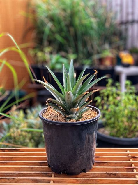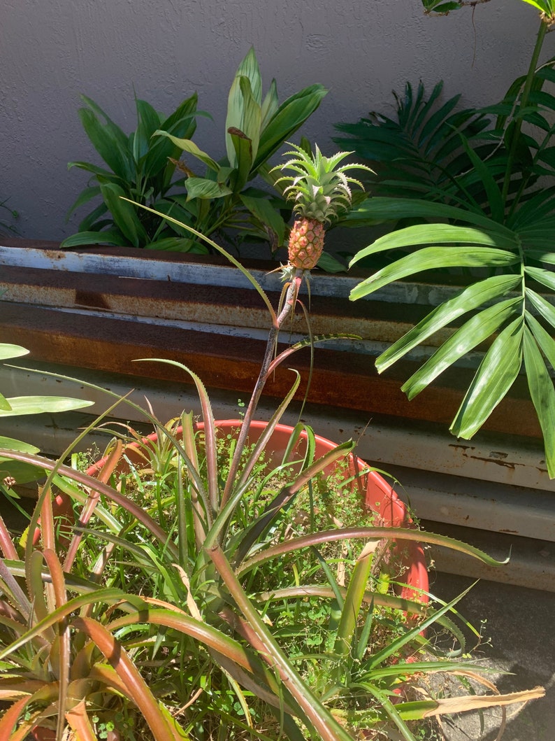 Nov 13, 2021 · You can determine the ripeness of pineapple by the following criteria: The main indicator of maturity is a sweetish smell. If it is not there, the fruit is not ripe. Green is not an indicator that the pineapple is unripe. It all depends on the variety. But the leaves of the top should be dark green, without damage.May 26, 2021 · Pineapples grow slowly, like most bromeliads. There is little difference in growth times whether you plant your pineapple indoors or grow it outdoors in the ground. It can take anywhere from 16 to 24 months for a pineapple plant to reach full maturity. That’s two years of caring for your pineapple plant while waiting for it to produce fruit.Feb 18, 2022 · Follow the list below to find out the best ways to propagate and care for your indoor pineapple plant. Use a twisting motion to separate the top half of the fruit from the bottom. If the fruit is ripe, it is yours to eat. Expose the stalk by removing some of the leaves.Oct 29, 2012 · Pineapples are not hard to grow indoors. A successfully rooted pineapple plant will start to grow within weeks, provided it gets plenty of warmth and adequate moisture. Once rooted, the pineapple will produce mature fruit in about two years, although this length of time will vary depending on your conditions.Apr 02, 2020 · When your pineapple is ripe the skin will change from green to yellow, after one-third is yellow it’s time to harvest. Also, tap the fruit and if it sounds hollow leave it on the plant until it sounds solid when you tap …After about 12 to 18 months, a flower will develop that will become the fruit in another 4 or 5 months. The larger your plant has grown, the larger your fruit will be. You’ll harvest your pineapple at its peak of ripeness. You’ll know it’s ready when half of your pineapple has turned from green to its beautiful ripe, golden color.Feb 27, 2022 · Take a large plastic bag and put your pineapple plant and its planter inside. Also, add a ripe apple and tie the bag closed. Wait, what?! No, really! Apples produce ethylene, which will encourage flowering. Leave things like this for a week or so. Once you’ve taken it out of the bag, be patient, and care for your pineapple plant as usual.Jun 04, 2020 · To speed up the ripening process, place your pineapple in a paper bag along with an apple or pear. Seal the top of the paper bag by folding the top a couple of times, leave the bag in a dry, dark spot of your kitchen or house for about one to two days. After the time is up, remove your pineapple from the bag, and chop it up.
